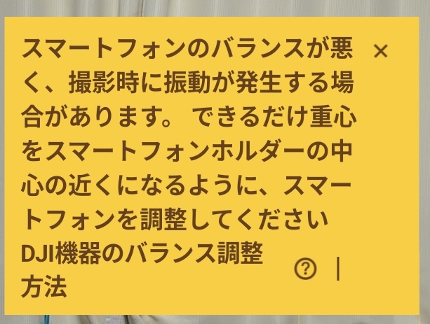 カメラ部分が重くバランスが悪いのでこんなメッセージがちょくちょく表示されました